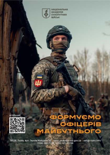 Національна Академія сухопутних військ – формуємо офіцерів майбутнього 19 Лютого, 2026 Національна Академія сухопутних військ – формуємо офіцерів майбутнього. nasv@post.mil.gov.ua +380 (32) 258-44-00