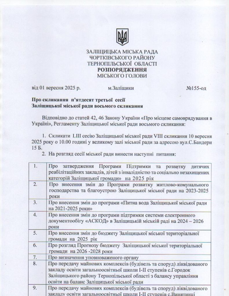 Рішення про скликання сесії ради доводиться до відома депутатів і населення не пізніше – 10 днів до сесії, а у виняткових випадках – не пізніше, як за день до сесії із зазначенням часу скликання, місця проведення і питань, які передбачається винести на розгляд ради.