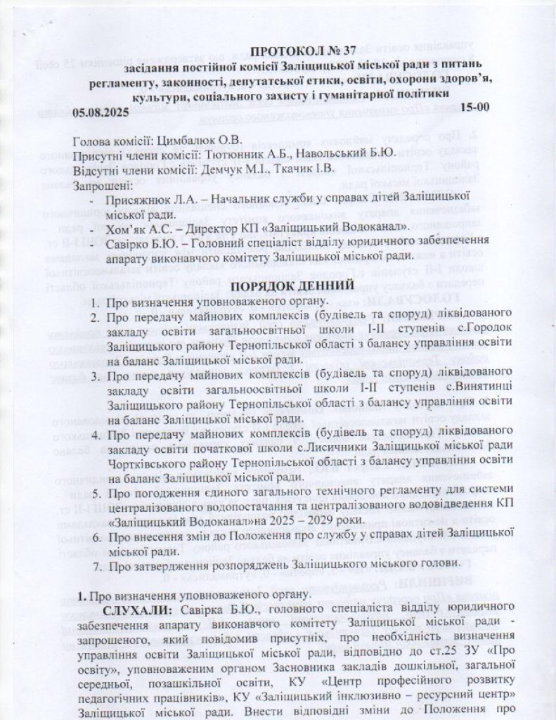 • Заліщицьке управління Чортківської філії Тернопільського ОЦЗ 30 Вересня, 2025